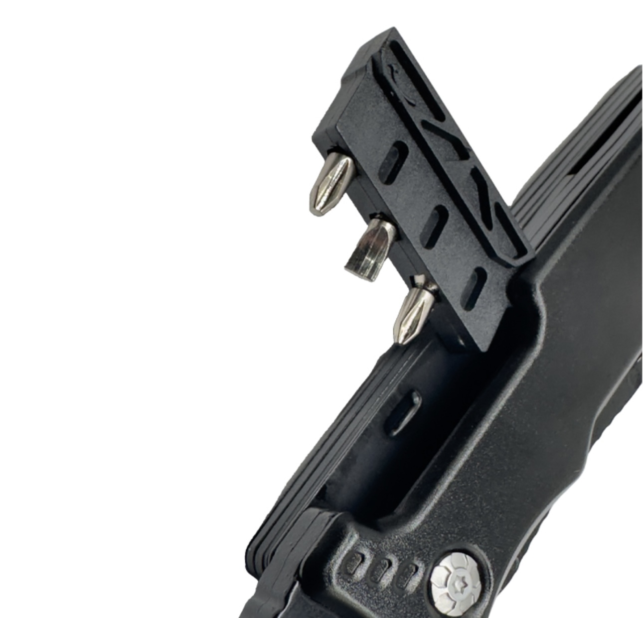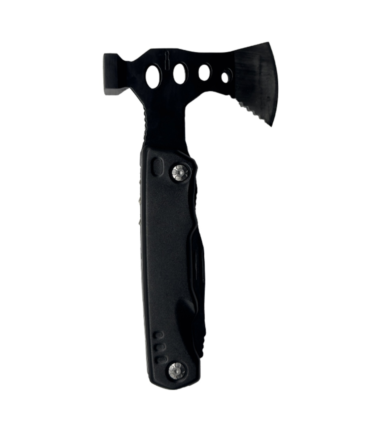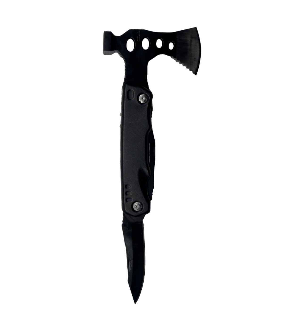 FUNCTIONS: Axe, Head mounting, Hammer, PH2 Cross batch, SL4 5 in one batch, PH1 cross batch, wire scissors, pliers, main knife, bottle opener, serrated knife, hexagon wrench