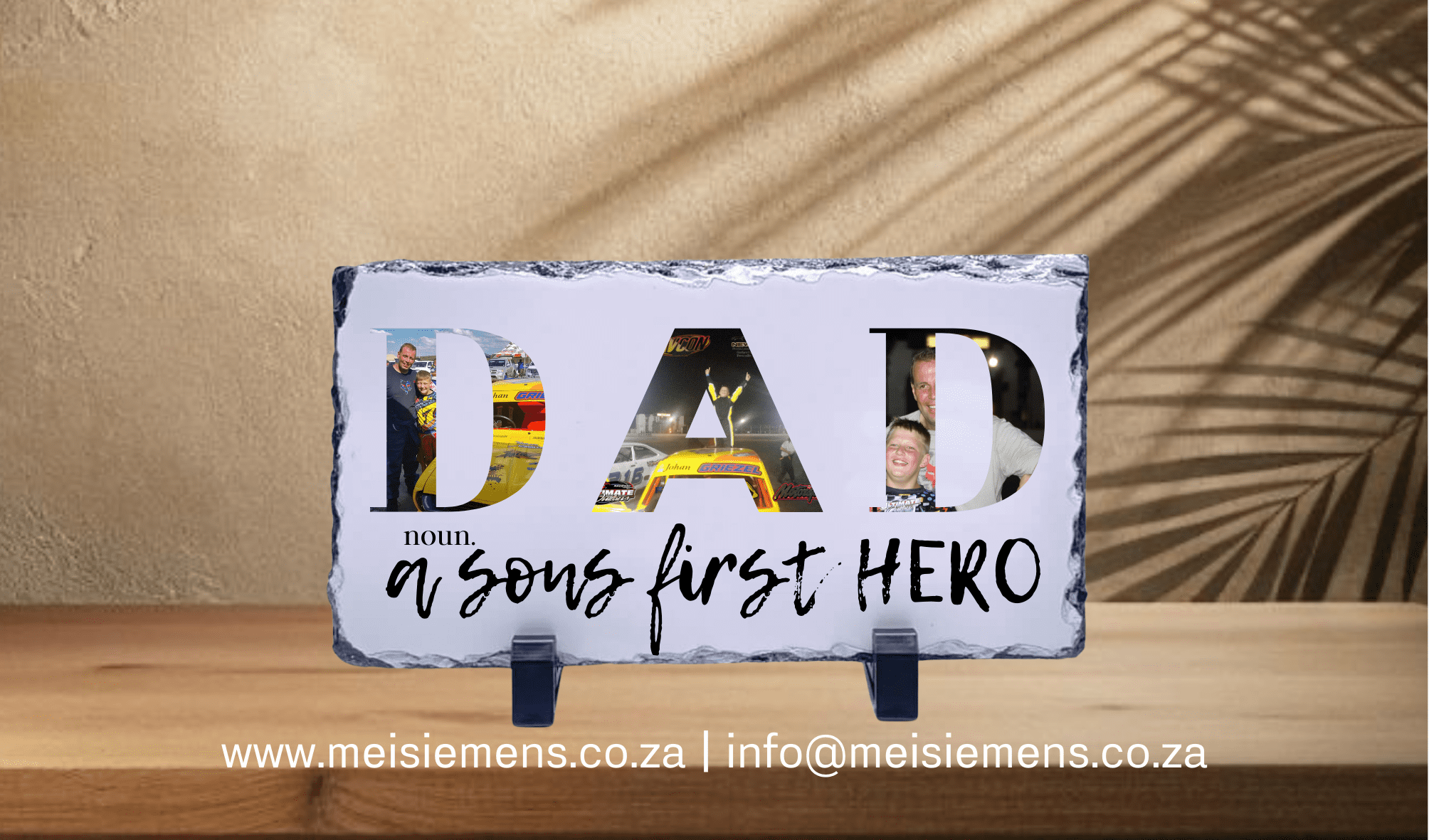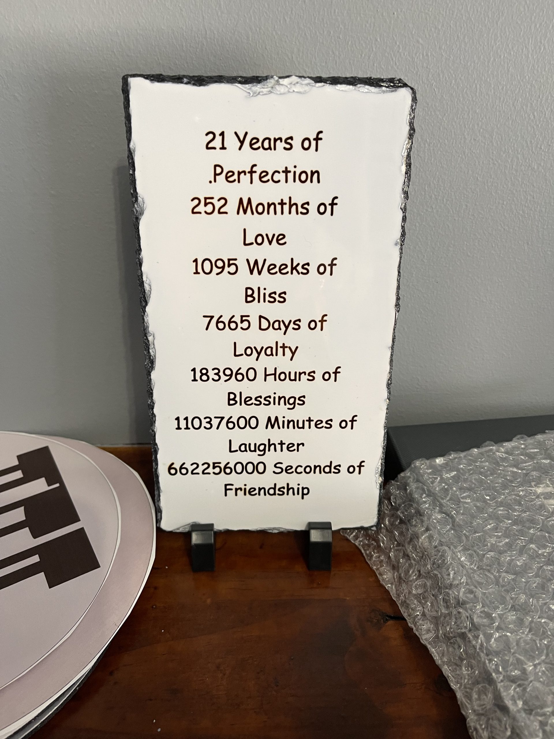 The Photo display is perfect for cabinets, showcases, and office desks. The Stone photo displays are made from durable stone. Each Stone photo display comes with two stands to keep your photo display standing up. This item can be personalized with a design of your choice.